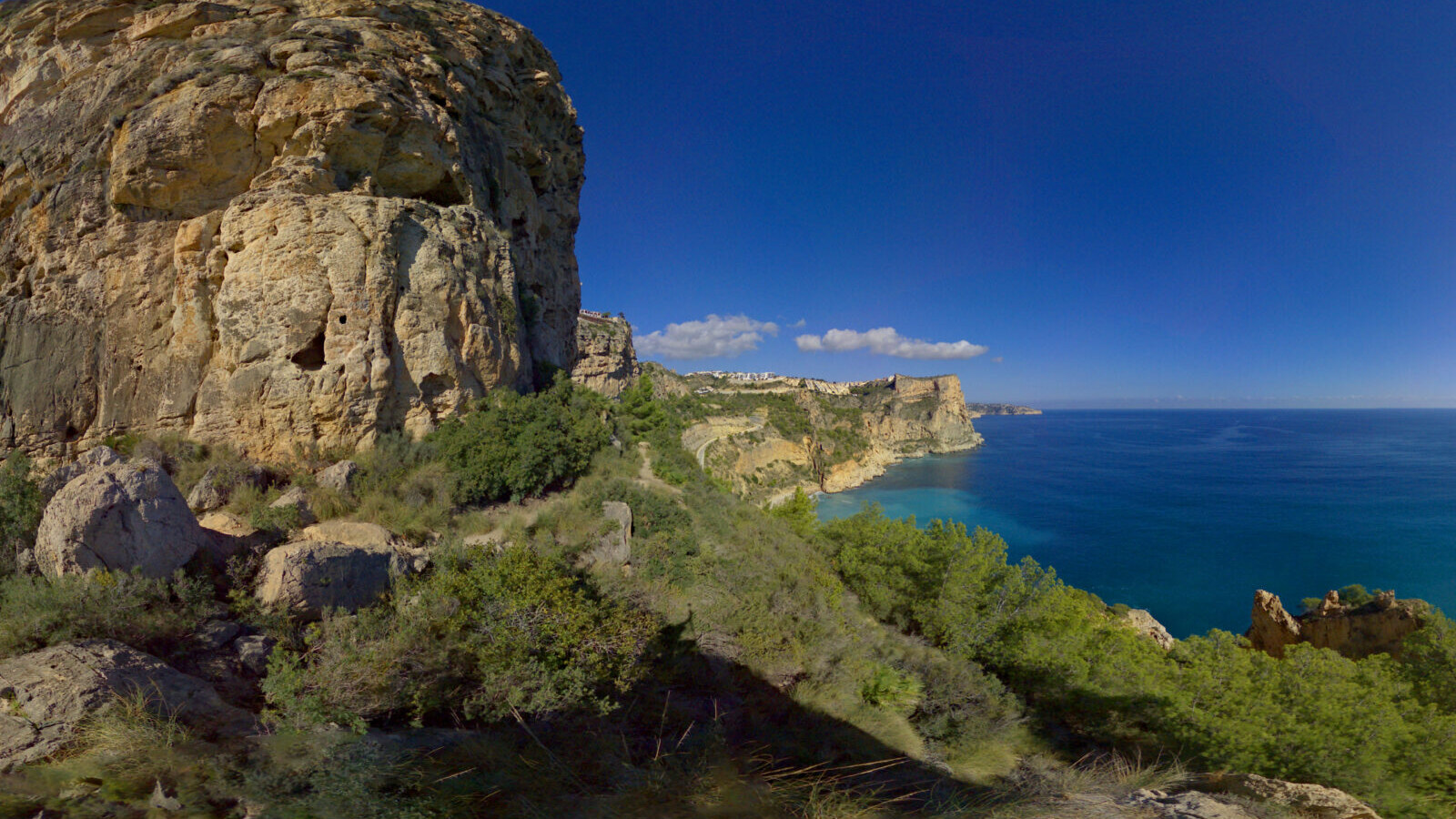 Vegetación autóctona y fauna. La vegetación está dominada por especies comunes en el litoral de la Marina Alta como el lentisco, el aladierno y el romero, acompañadas de otras como el esparto, el ballón, la coronilla de hoja fina y la lavanda. Es fácil encontrar también ejemplares jóvenes de pino carrasco y otros árboles como el algarrobo, la higuera y el olivo, típicos mediterráneos.